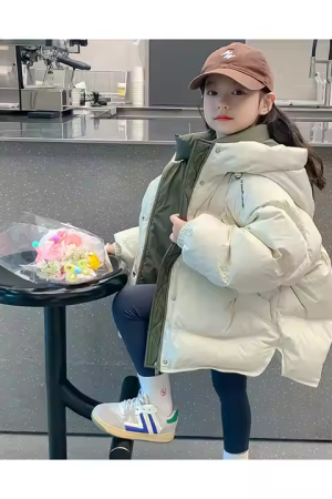 White Goose Down Kids Girls Outerwear Hooded Coat